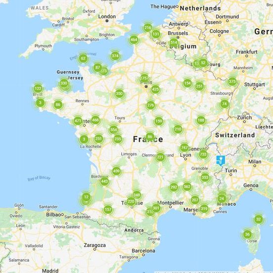 Carte interactive pour localiser les bornes de recharge de voiture électrique en France.